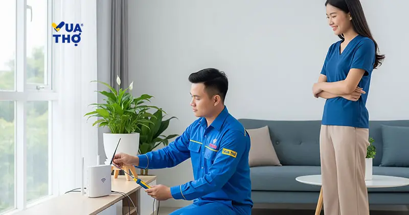 Khi ấy, bạn nên đặt thợ qua ứng dụng Vua Thợ tại đây để được hỗ trợ nhanh tại nhà. Thợ mang theo dụng cụ đo tín hiệu, thiết bị kiểm tra router để xác định và khắc phục vấn đề.