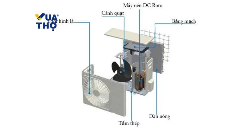 Cục nóng điều hòa bao gồm các bộ phận chính như dàn ống đồng, quạt gió, bộ lọc khí và linh kiện điện tử. Các nhà sản xuất hiện nay đã cải tiến thiết kế giúp nó nhỏ gọn, bền và hiệu quả hơn.