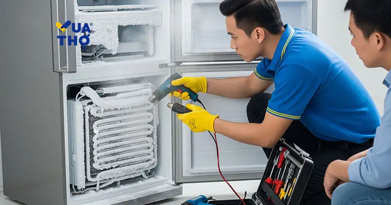 Nếu nghi ngờ ngăn đông bị lỗi, hãy xả đá thủ công. Tắt nguồn, lấy thực phẩm ra, mở cửa để tuyết tan trong vài giờ hoặc qua đêm. Không dùng vật sắc nhọn để cạy đá, tránh hỏng dàn lạnh. Sau khi tan hết, vệ sinh và cắm điện để kiểm tra.